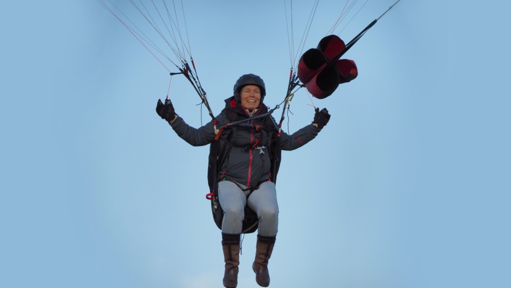 After take-off you notice that you need to pull quite a bit of right brake to ensure the paraglider flies straight ahead.